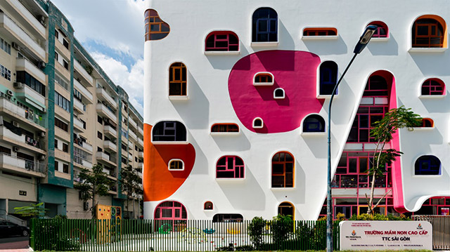 在進(jìn)入二層立面內(nèi),由相同的磚形成的整體視覺感在連接空間不同功能的同時,形成了抽象的煙囪結(jié)構(gòu)形象,連接品牌的整體給人一種溫暖感。